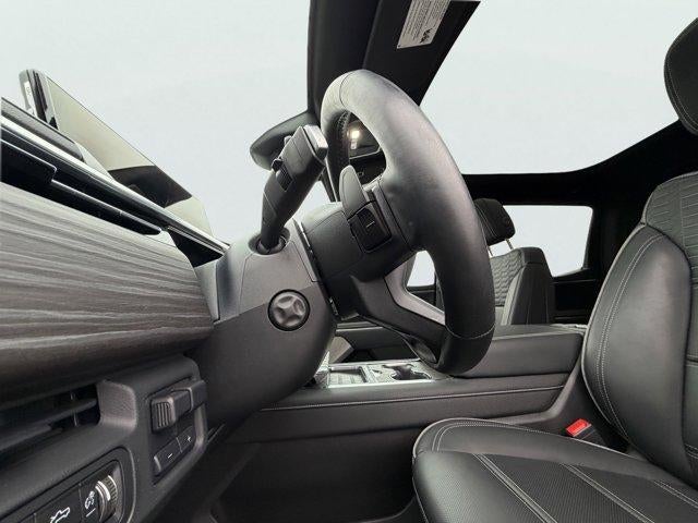 former GM Company car Sierra EV Denali Edition that had an msrp over $99K dollars! The long list of features include: 2 motor performance AWD, fixed panoramic glass roof, super cruise (requires On-Star subscription), adaptive cruise control, enhanced automatic emergency braking, rear cross traffic braking, blind zone steering assist, forward collision alert, air ride adaptive suspension, 4-wheel steer w/crab walk, 24" aluminum wheels, 14" head-up display, heated and ventilated front seats, heated rear seats, heated steering wheel, assist steps, trailering package, keyless entry with remote starter, OnStar and XM Radio. This EV is covered by the bumper to bumper warranty until 01/21/2029 or 36k miles as well as the GM EV propulsion battery warranty until 01/21/2034 or 100k miles